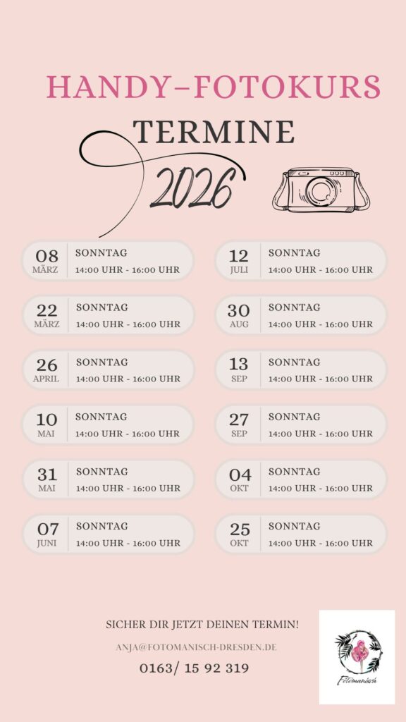 Warum nicht alle Funktionen nutzen, die deine Handykamera für dich bereit hält? Es ist egal, was du für ein Smartphone hast. Gemeinsam können wir kreative Perspektiven ausprobieren und unseren Blickwinkel auf Dresden ändern.